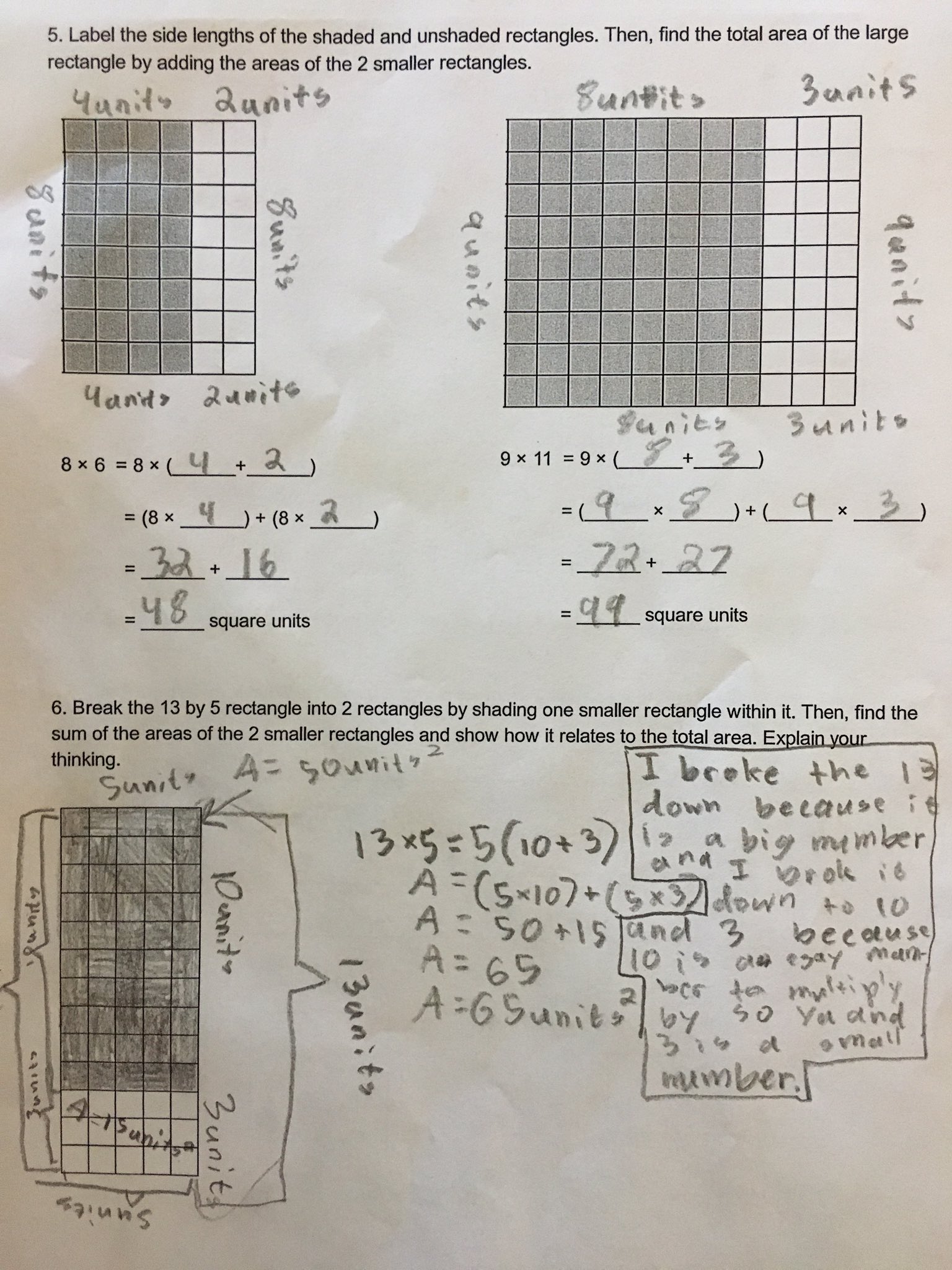 G3-M4-Lesson 10 Label the side lengths of the shaded and unshaded rectangles. Then, find the total area of the large rectangle by adding the areas of the 2 smaller ...2 pages 1. Label the side lengths of the shaded and unshad - Gauthmath Jun 15, 2021 — 1. Label the side lengths of the shaded and unshaded rectangles when needed. Then, find the total area of the large rectangle by adding the ...1 answer · Top answer: Answer: . Mathematics Notes: Topical Maths Assignments F1-4 With Answers ... 1.2 x 0.0324 0.0072 . Simplify 2 / 3 of 12 - (1 1 / 3 + 1 ¼ ); If x= 2, Find the value of x 3 - 5x 2 - 4x + 3; If X = ½ y= ¼ and z = 2 / 3 Find the value of x + yz. y - xz . Find a and b if 3.168 = 3 a / b; Find the greatest common factor of x 8 y 2 and 4xy 4.Hence factorize completely the expression x 3 y 2 - 4xy 4; A hot water tap can fill a bath in 5 minutes while a cold water ...