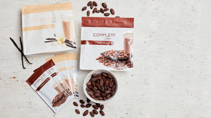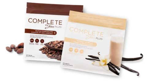 Complete by Juice Plus+ drink mix - Chocolate Packets | Juice Plus+ Complete by Juice Plus+ is a whole-food-based beverage mix that provides balanced nutrition in every scoop. Complete by Juice Plus+ can be used in any number of ways: as a healthful "on-the-go" breakfast, pre-exercise energy drink, post-workout recovery drink, or a late night snack.