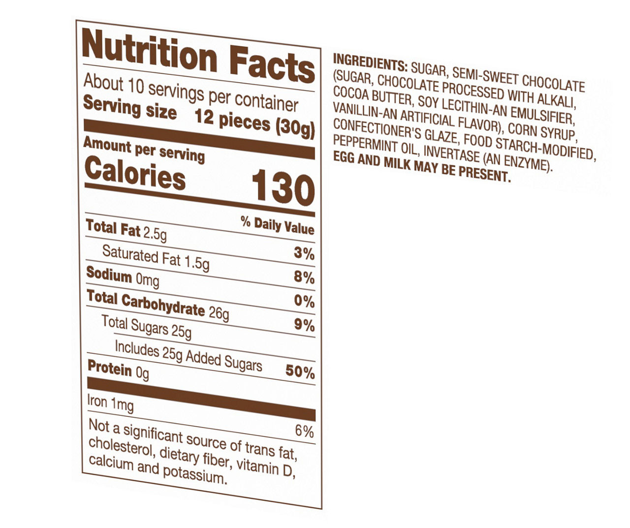 Junior mints nutrition facts