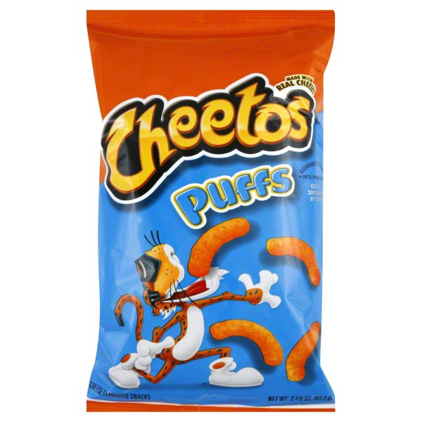 Cheetos Cheese Puffs: Calories, Nutrition Analysis & More - Fooducate Personalized health review for Cheetos Cheese Puffs: 160 calories, nutrition grade (D), problematic ingredients, and more. Learn the good & bad for 250,000+ products. Calories in Cheetos Cheetos Puffs and Nutrition Facts - FatSecret Cheetos Puffs Nutrition Facts Serving Size 13 pieces (1 oz) Amount Per Serving Calories 160 % Daily Values* Total Fat 10.00g 13% Saturated Fat 1.500g 8% Trans Fat 0.000g Cholesterol 0mg 0% Sodium 270mg 12% Total Carbohydrate 16.00g 6% Dietary Fiber 0.0g 0% Sugars 1.00g Protein 2.00g Vitamin D - Calcium - Iron - Potassium 60mg 1% U.S. Gluten Free Products and Products Not Containing Gluten ... Jul 07, 2022 · However, we recommend that you check the label on a specific product for the most current and accurate nutritional information. If you need assistance, please contact Frito-Lay Consumer Relations toll-free at 1-800-352-4477 Monday through Friday between 9:00 a.m. and 4:30 p.m. Central Standard Time. Nutrition Label - Allergen Inside It looks like Cheetos Sweetos Cinnamon Sugar Puffs are Free From a total of: 11 different TOP 14 Allergens. ... Nutrition Label. Nutrition Facts. Serving Size 1.00 oz. Servings Per Container 2.50. Amount Per Serving. Calories 160 Calories from Fat 90 % Daily Value* Total Fat 10g. 15.38%.