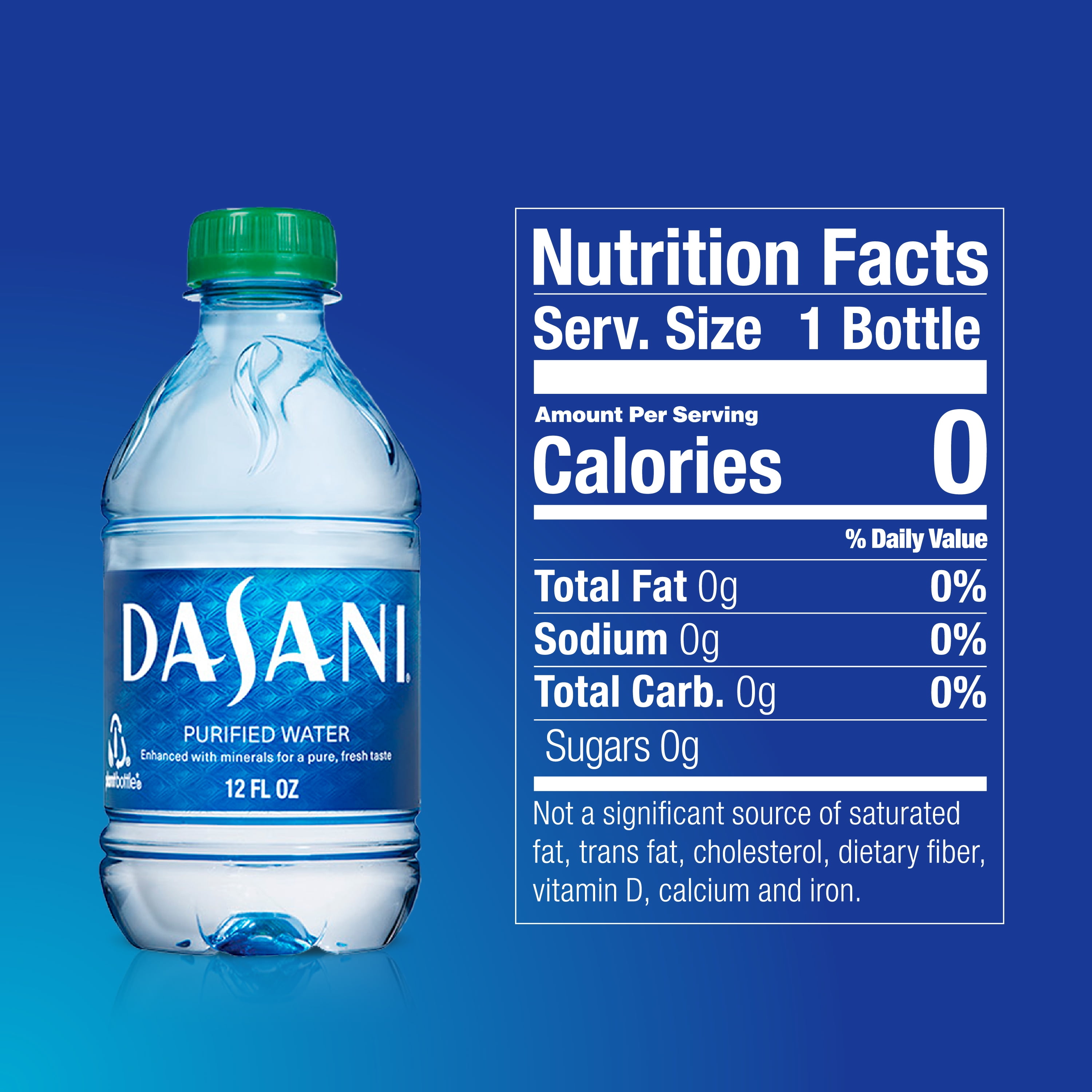 Dasani Water Ingredients | 4 important Ingredients - Health Strives Dasani bottled water contains four ingredients: Tap water, Magnesium sulphate, Potassium chloride and, Salt, The label of the Dasani bottle claims that these ingredients are added to enhance the taste of the water. But they change a lot more than just taste. Do you know what is really in your Dasani bottle? Dasani® Purified Water, 20 fl oz - Kroger DASANI is a bottled water that's designed to make a difference. This is hydration redefined. Redefine hydration with purified DASANI water bottles, Enhanced bottled water with a proprietary blend of minerals for a pure, fresh taste, Purified using reverse osmosis filtration, Bottled in PlantBottle packaging, up to 30% made from plants, Water, bottled, non-carbonated, DASANI Nutrition Facts & Calories - Self NUTRITION INFORMATION, Amounts per 1 fl oz (30g) Footnotes for Water, bottled, non-carbonated, DASANI, Source: Nutrient data for this listing was provided by USDA SR-21. Each " ~ " indicates a... Hy-Vee Aisles Online Grocery Shopping Redefine hydration with purified DASANI water bottles. 8 pack of 12 fl oz, 100% recyclable bottles (excludes label and cap) Purified using reverse osmosis filtration. Bottled in PlantBottle packaging, up to 30% made from plants. Enhanced bottled water with a proprietary blend of minerals for a pure, fresh taste.