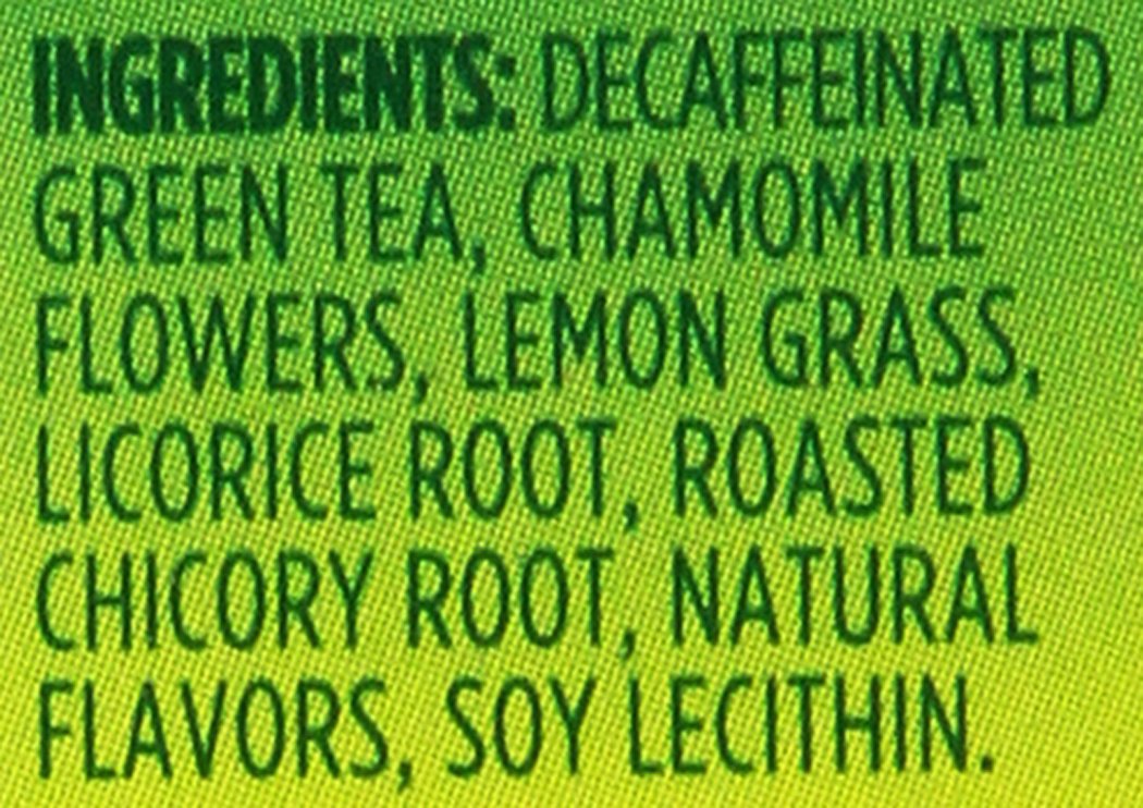 Lipton Green Tea, Honey Lemon Chamomile, Decaffeinated, Tea Bags 20 ... LIPTON brand Green tea with honey lemon ( decaffeinated) and chamomile 20 count. Susan. 5 out of 5 stars review. 7/5/2022. Great night time tea. Sometimes I want something warm to drink before bed. This is such a great thing to drink before bed! I love the flavor of green tea with a hint of honey. And I especially love that it is caffeine free!