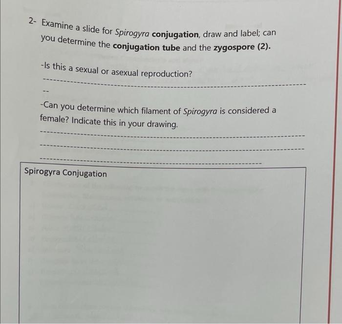 Solved 2- Examine a slide for Spirogyra conjugation, draw ...