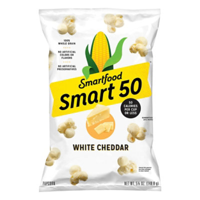 Calories in Smartfood Flavored Popcorn, White Cheddar - ... Comprehensive nutrition resource for Smartfood Flavored Popcorn, White Cheddar. Learn about the number of calories and nutritional and diet information for Smartfood Flavored Popcorn, White Cheddar. This is part of our comprehensive database of 40,000 foods including foods from hundreds of popular restaurants and thousands of brands. Smartfood Popcorn, White Cheddar: Calories, Nutrition ... -... Nutrition Serving Size: About 2 1/2 cups (28g) Amount per Serving My Daily Value Calories 160 Kcal 9% Total Fat 10 g 16% Saturated Fat 2 g 12% Trans Fat 0 g 0% Cholesterol 5 mg 2% Sodium 240 mg 10% Potassium 60 mg 1% Total Carbohydrate 14 g 6% Dietary Fiber 2 g 8% Sugars 2 g 3% Added Sugars 0 g 0% Protein 3 g 6% Calcium 30 mg 3% Iron 0.4 mg 2% Nutrition Facts for Smartfood White Cheddar Cheese Popcorn White Cheddar Cheese Popcorn Nutrition Facts Serving Size cups 2.5 cups = 28g Amount Per Serving 160 Calories % Daily Value* 15% Total Fat 10g 10% Saturated Fat 2g Trans Fat 0g 2% Cholesterol 5mg 10% Sodium 240mg 4% Total Carbohydrate 13g 7% Dietary Fiber 2g Total Sugars 2g 0% Includes 0g Added Sugars Protein 4g 0% Vitamin D 0mcg 5% Calcium 60mg