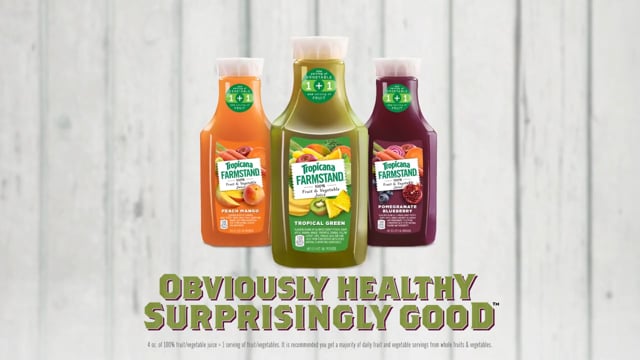 Tropicana Farmstand Tropical Green TV Spot, 'It's a Test' A man at a fruit juice stand in a grocery store asks customers to try the drink that's in the mysteriously generic white cup. Each woman says she tastes strawberry, mango or carrot. Then, the man lifts the box on the counter to reveal the new Tropical Green juice from Tropicana Farmstand. Tropicana® Farmstand Tropical Green Reviews 2023 Tropicana® Farmstand Tropical Green (364 reviews) Review this. REVIEWS 364 reviews. 4.4. 5 star. 62%. 4 star. 19%. 3 star. 12%. 2 star. 1%. 1 star. 3%. Review this. Mohammed manaf Y. 4 months ago. It tastes some what ike natural taste good can a have try . Seems like refresshing when it is cold and will recommend ths product. Tropicana Farmstand | PepsiCo Partners Farmstand A delicious way for your guests to get more vegetables, Tropicana Farmstand® is a 100% fruit and vegetable juice blend with no added sugar. It has one serving of fruit plus one serving of vegetables in every glass, and is an excellent source of vitamins A & C. PARTNER WITH PEPSICO TODAY View all FARMSTAND products